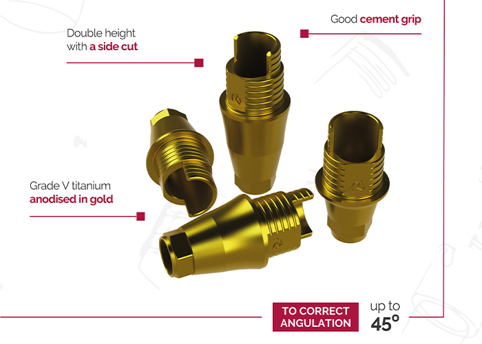 La solución inteligente para rehabilitaciones anguladas en flujo 100% digital. Ventajas clave: 🔹 Patente US 10.130.447 🔹 Retenciones externas para una cementación segura 🔹 Diseño de doble altura con corte lateral 🔹 Corrección de angulación hasta 45° 🔹 Titanio Grado V anodizado en oro para una estética superior 🔹Diferentes alturas gingivales disponibles El sistema de Interfase Dinámica incluye: ✔ Interfase …