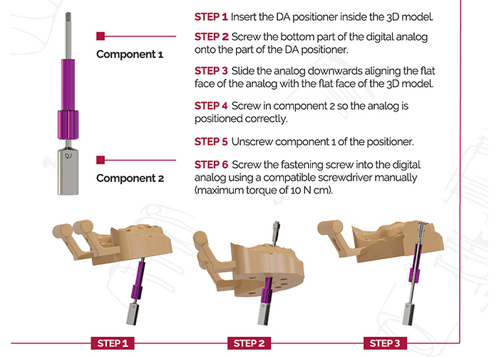 El posicionador ayuda a la colocación de la réplica digital dentro del modelo de impresión 3D. Además, gracias a los componentes que lo configuran permite una buena inserción para poder atornillar la réplica. Para insertar la réplica digital correctamente en el modelo 3D es necesarios seguir estos 6 sencillos pasos. 1. Inserte el posicionador DA dentro del modelo 3D. 2. …
